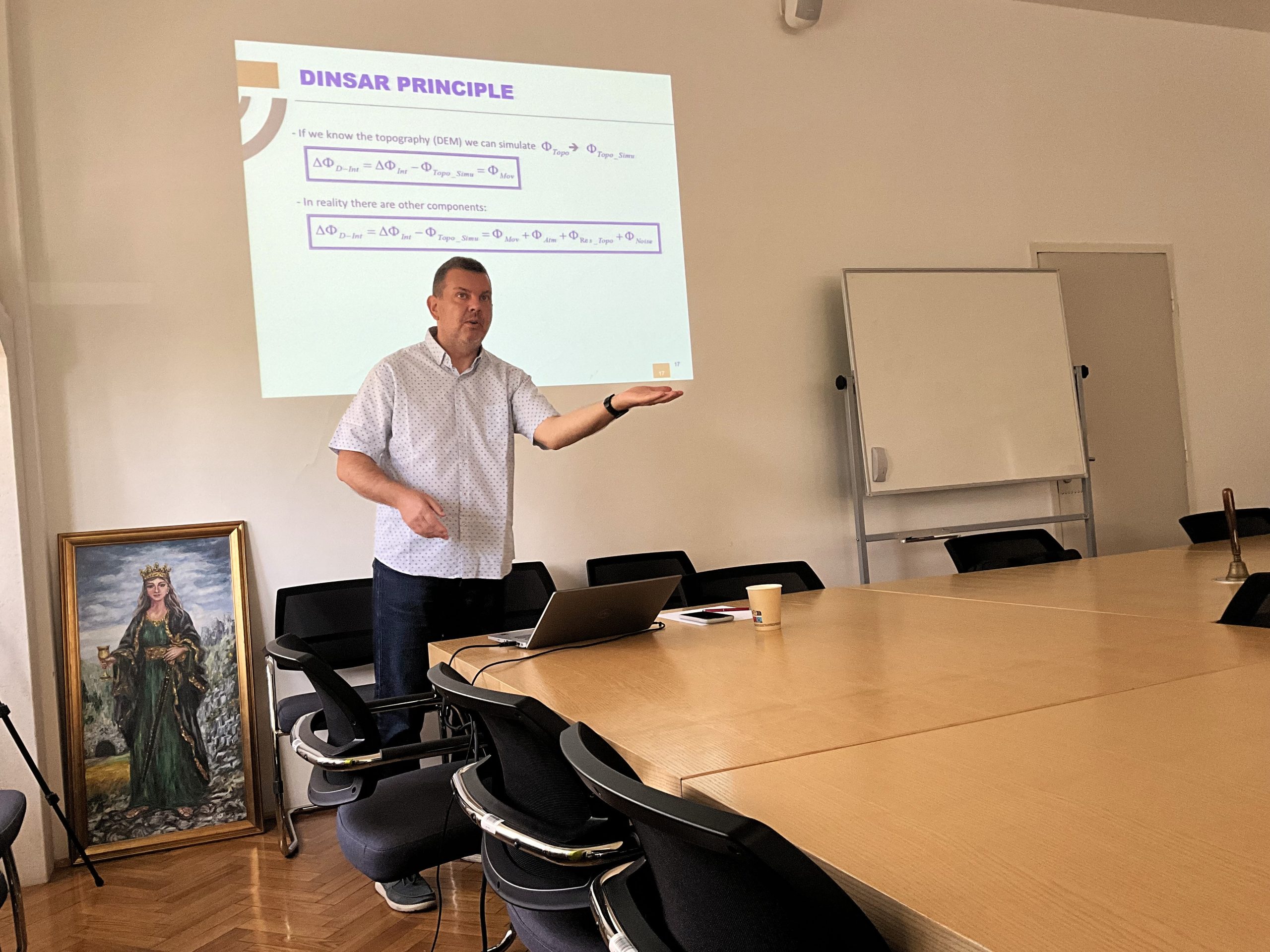 Seminar je održan 27. rujna 2024. godine u prostorijama Rudarsko-geološko-naftnog fakulteta Sveučilišta u Zagrebu. Predavanje je održao Michele Crosetto iz Centra Tecnològic de Telecomunicacions de Catalunya (Barcelona), istaknuti stručnjak u području primjene satelitske radarske interferometrije.